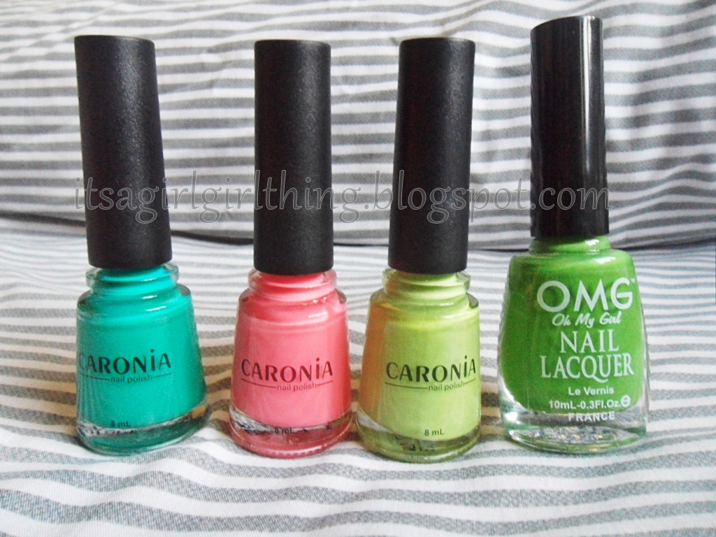 I ended up buying four new polishes. Three of them are three different shades of green and the other is baby pink.